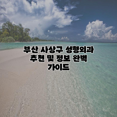 부산 사상구 성형외과 추천 및 정보 완벽 가이드